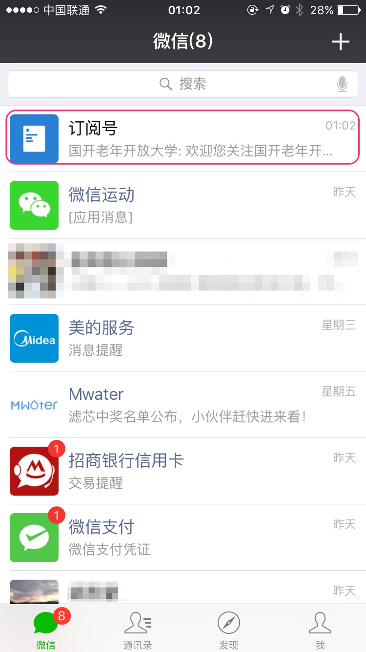 通过搜索关注公众号