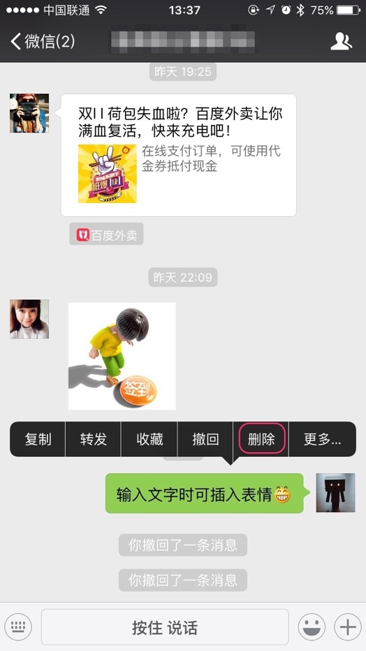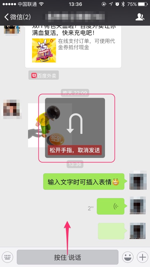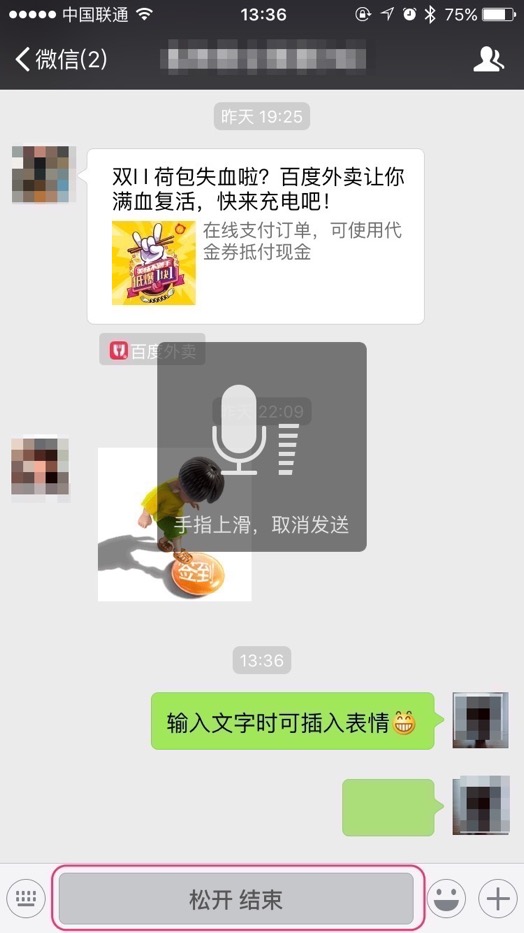 • 如果您没有连接wifi,发送照片、视频等内容将消耗手机流量。