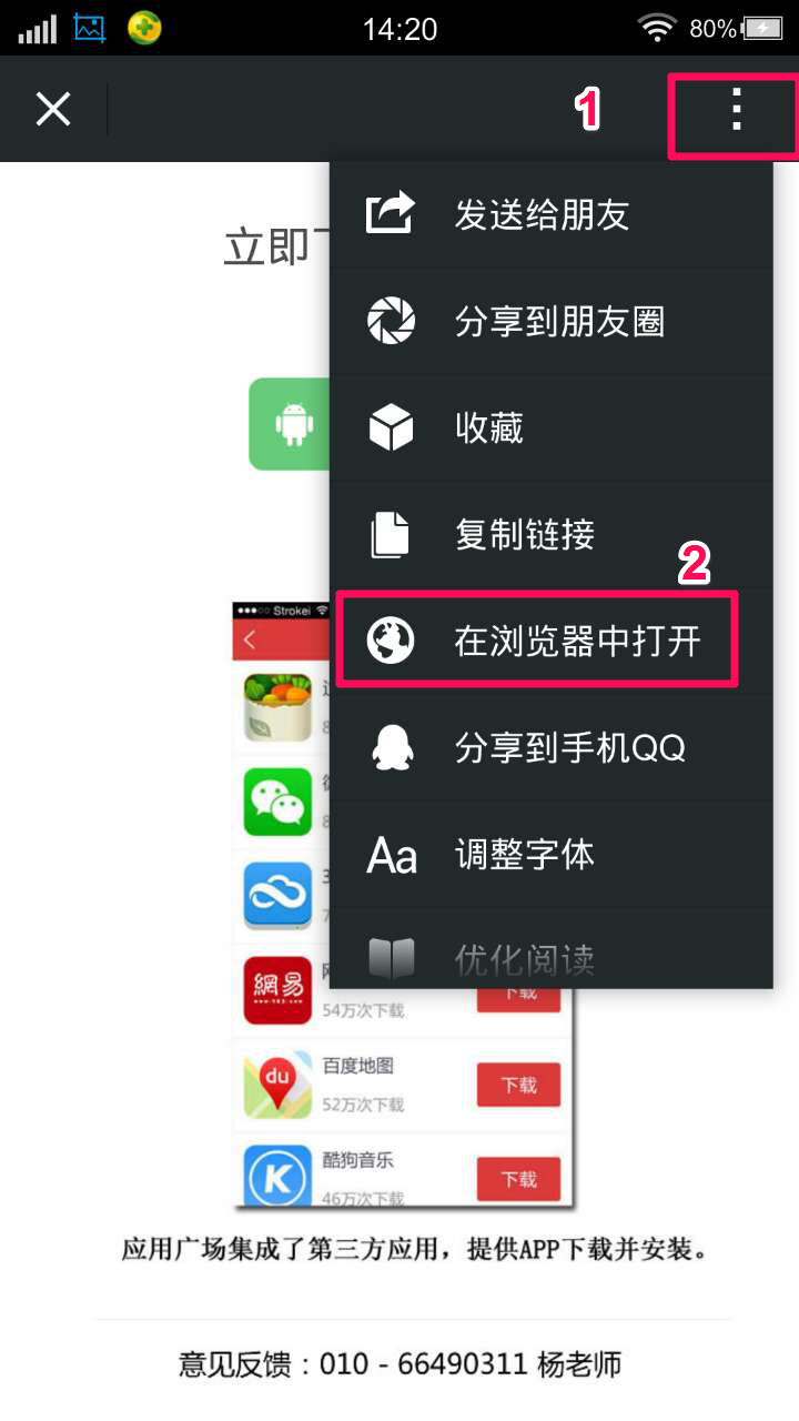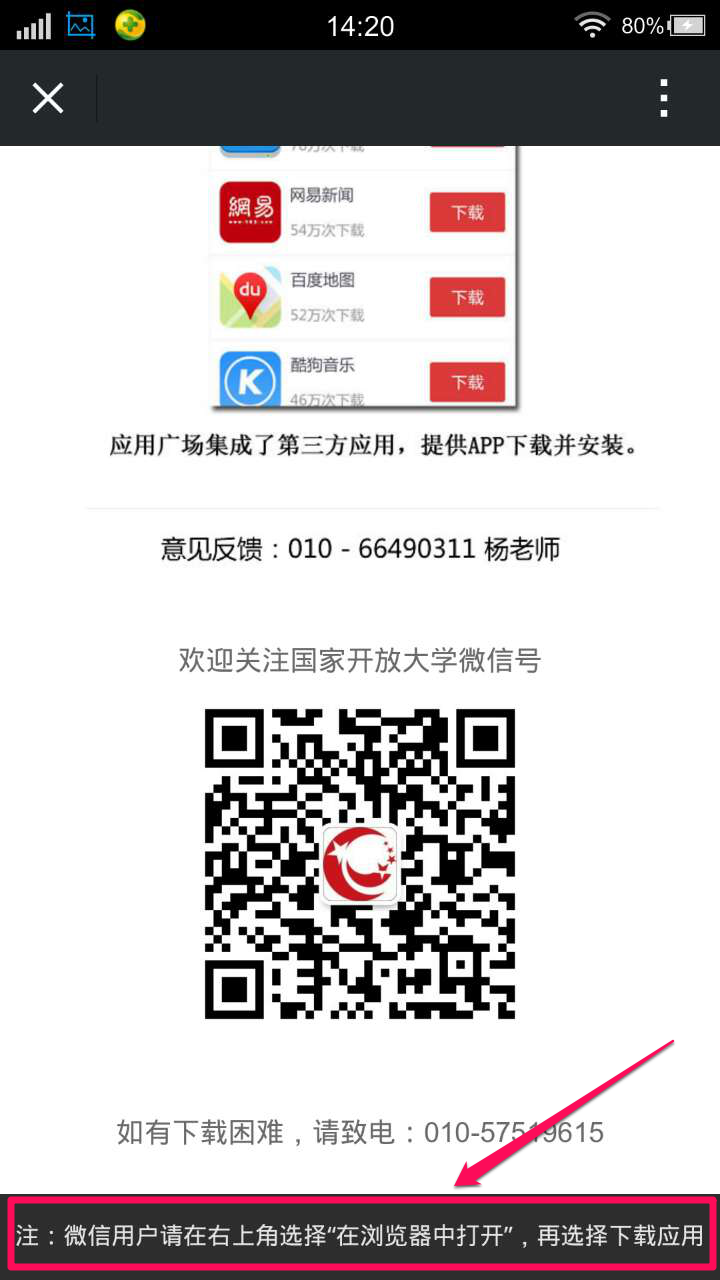 看到页面最下方的提示,微信用户需要打开浏览器才可以继续下载