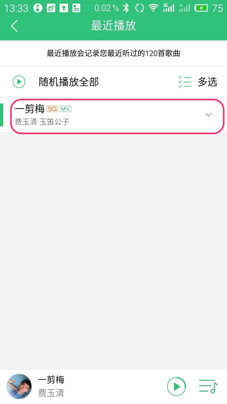 “QQ音乐”会按照您输入的关键字搜索音乐并显示搜索结果,搜索结果按照演唱者分类显示,可以看到“一剪梅”有多名歌手演唱过,选择您想听的版本点击即可在线试听,我们现在点结果中的第一条,由费玉清演唱
