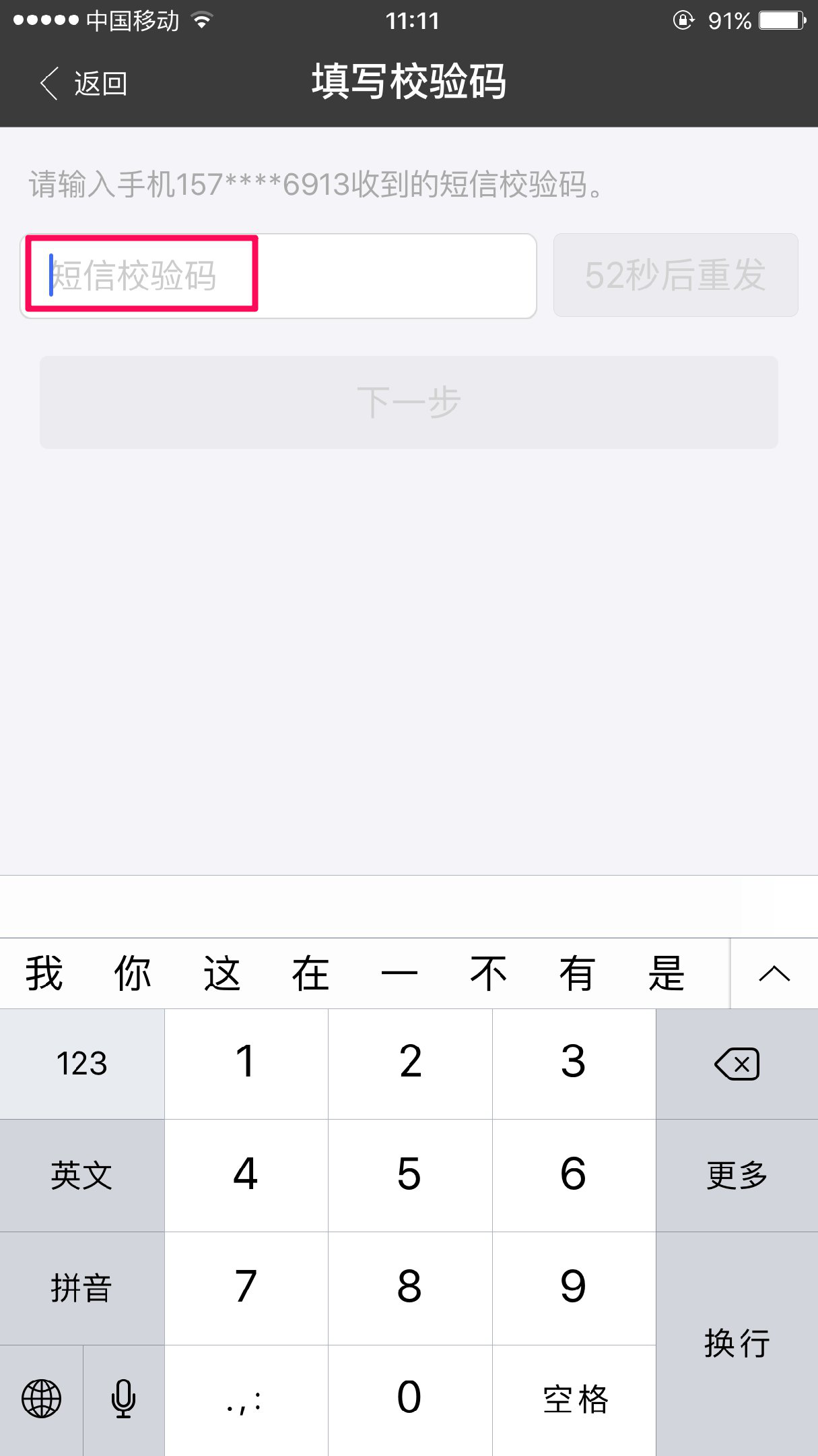 点击确认还款后,您将在60秒内收到一条短信,将短信中的验证码填写后,点击“下一步”按钮