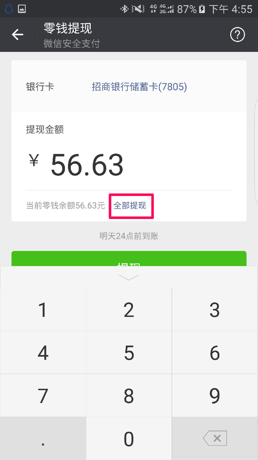 • 微信单日提现金额不能超过50000元。如果零钱提现提示超过每日限额,您可以在次日0点以后,再发出提现申请