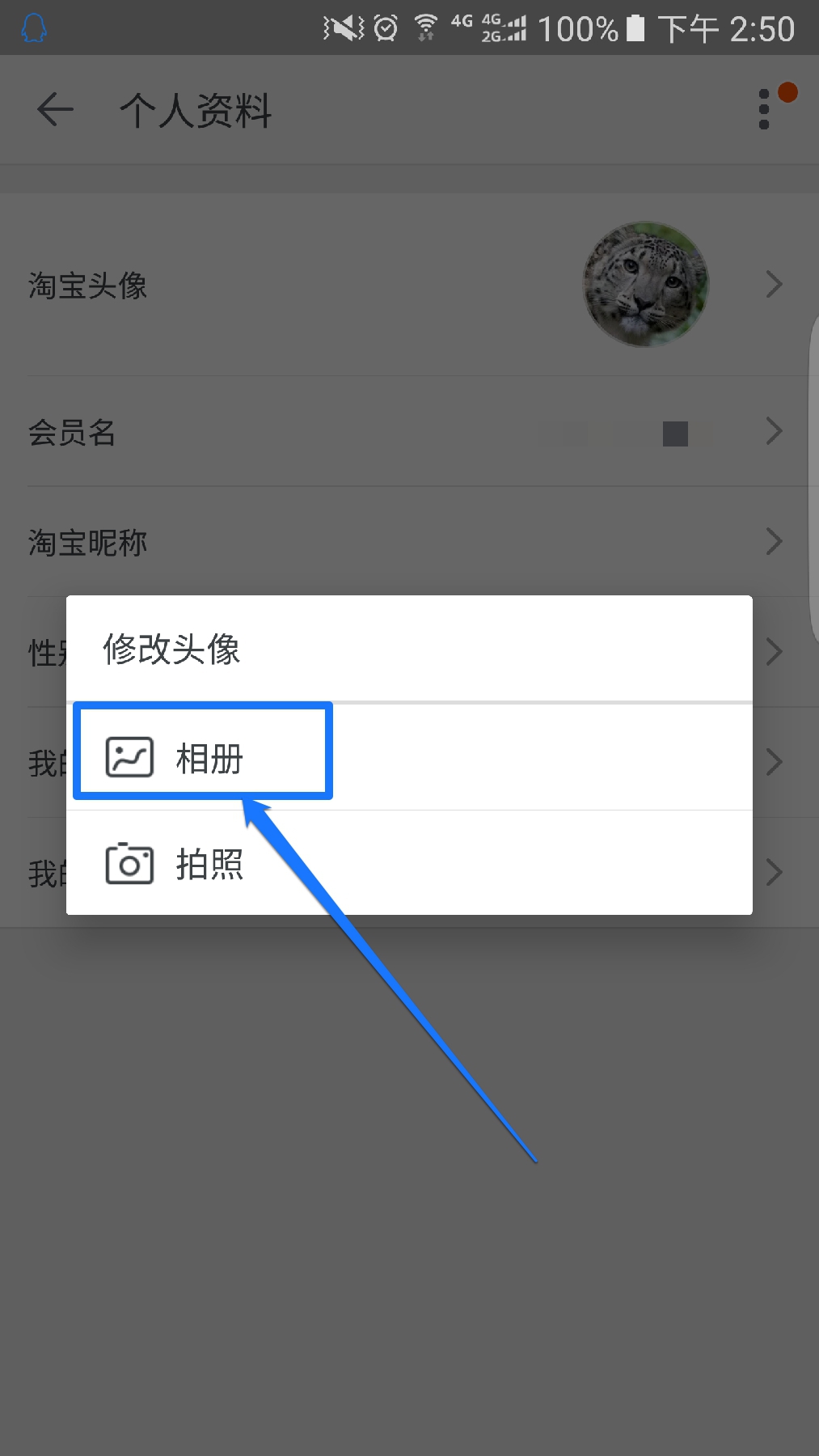 这里我们选择已有图片作为淘宝的头像。点击“相册”