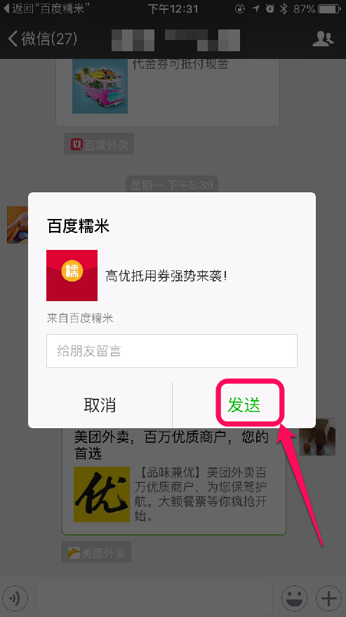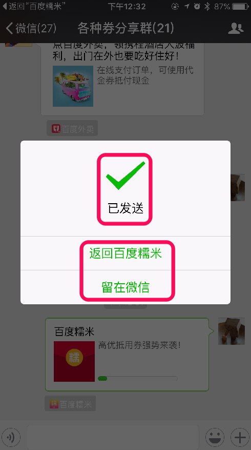 分享“百度糯米”优惠券到微信