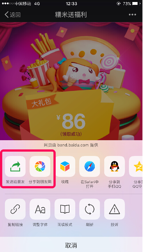 分享优惠券到朋友圈