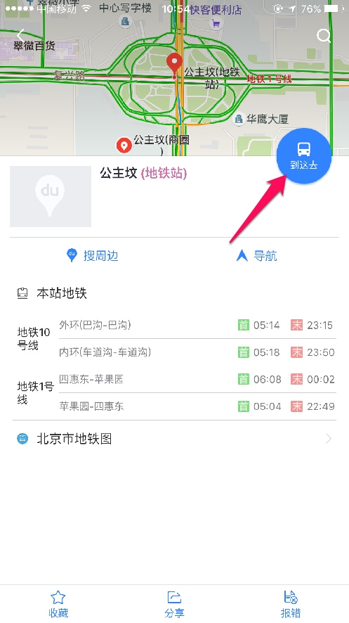 点击公主坟后页面上会显示“到这去”按钮,点击它