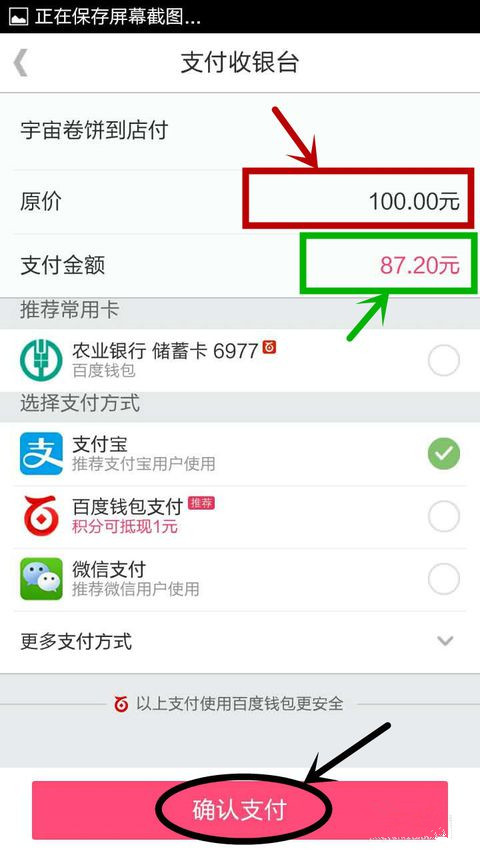 • 到店付是到店可以通过糯米APP直接买单。消费者到与糯米合作的商家消费后,根据商家优惠满减及商家不参与活动的项目如酒水特价菜结算出总价-优惠=需要支付的金额,再进行线上支付。