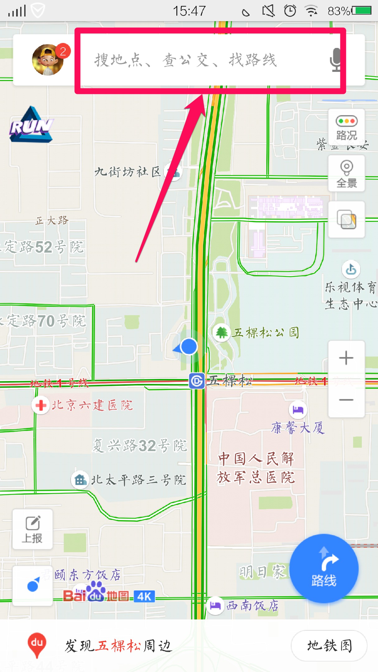 “百度地图”APP具有街景功能,能帮助您查看出行路线的实景情况。下面我们为您介绍,如何使用“百度地图”街景功能。