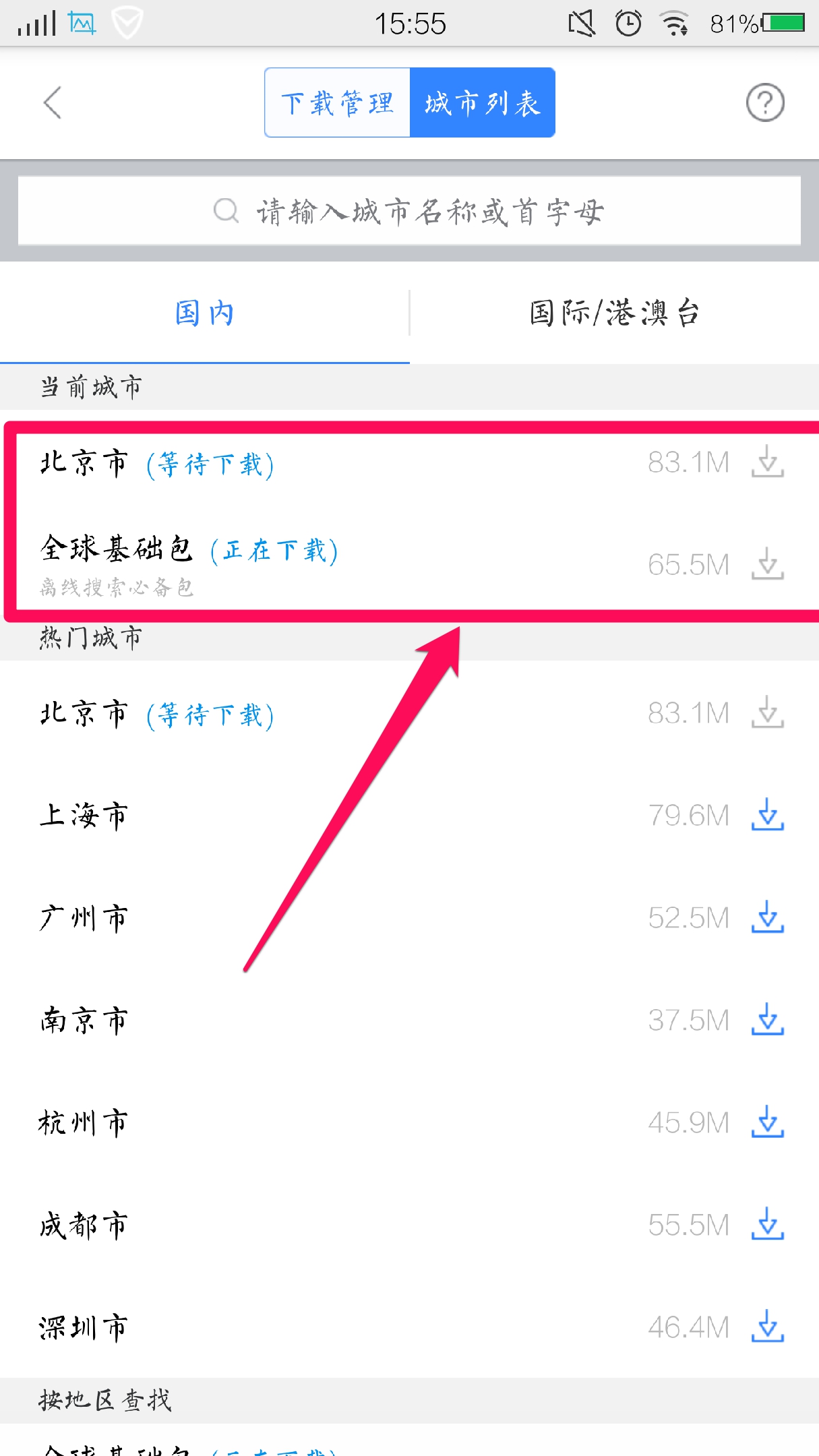 使用“百度地图”离线地图功能