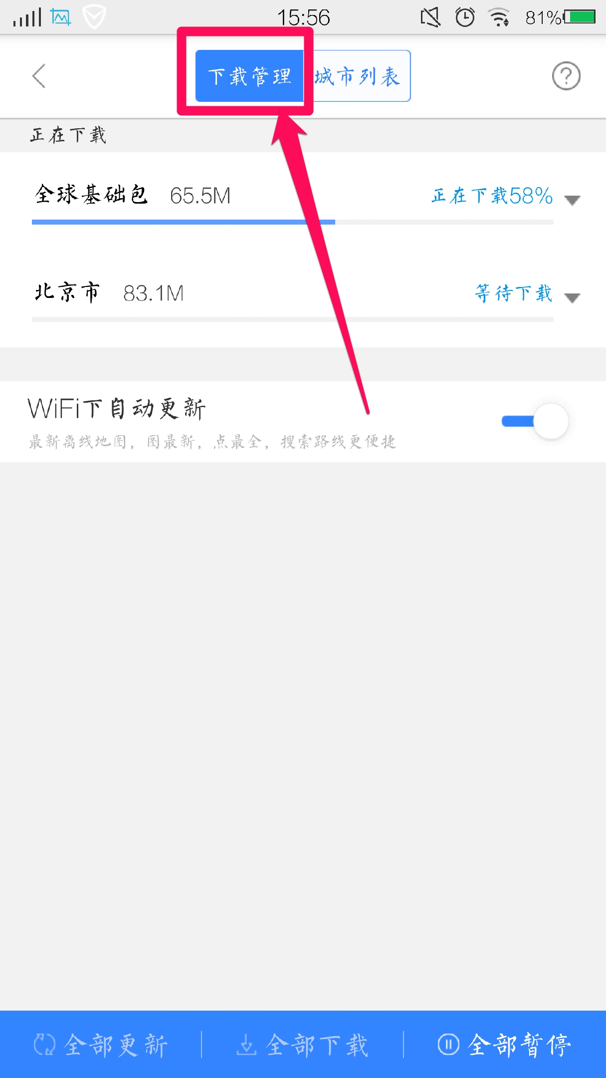 • 请在WIFI环境下,下载离线地图。