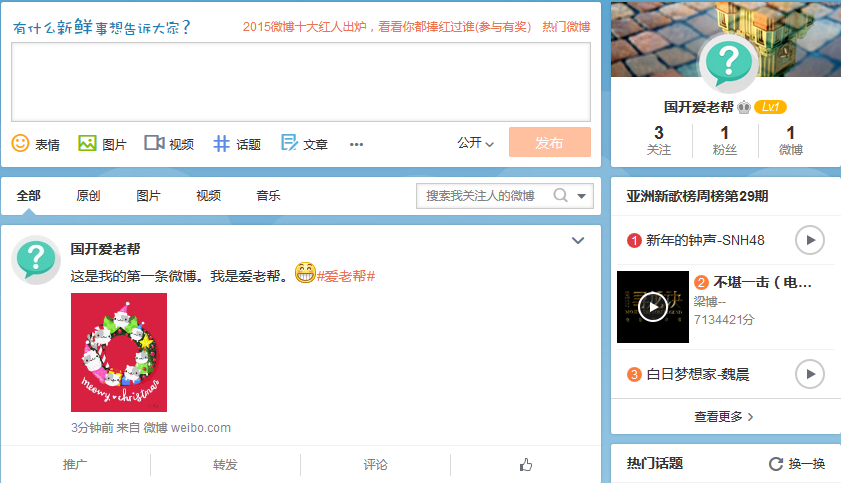 微博是一个开放的圈子,您发布的每一条微博都默认所有人可见。请切记保护好个人隐私,不要发布敏感或隐私内容