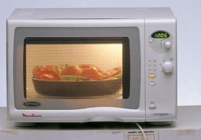 由于微波炉时从里到外加热食物的,因此 有时容器很凉,但食物已经烫嘴了。取出食物 后,应该先等一两分钟,使它冷却到安全温度。